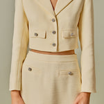Add a touch of sophistication to your wardrobe with our Cropped Tweed Jacket. Crafted with a stunning tweed fabric, this jacket features a crop design that perfectly complements any outfit. The jewel buttons add a hint of glamour, while the lining ensures maximum comfort. Perfect for any occasion, this jacket will keep you looking stylish and on-trend. Pair it with jeans for a casual look or with its matching bottoms for a more formal event. Elevate your style game with our Cropped Tweed Jacket and be the center of attention.
