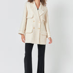 This beautiful tweed-made double breast coat serves as a perfect addition to your wardrobe. Featuring a loose fit big collar and lapel and stylish edge fringe details this coat is an exquisite choice. Keep warm with its cozy fabric while standing out with its stunning look. This elevated coat is perfect for both casual and formal occasions alike. Get it now and make a stylish statement!