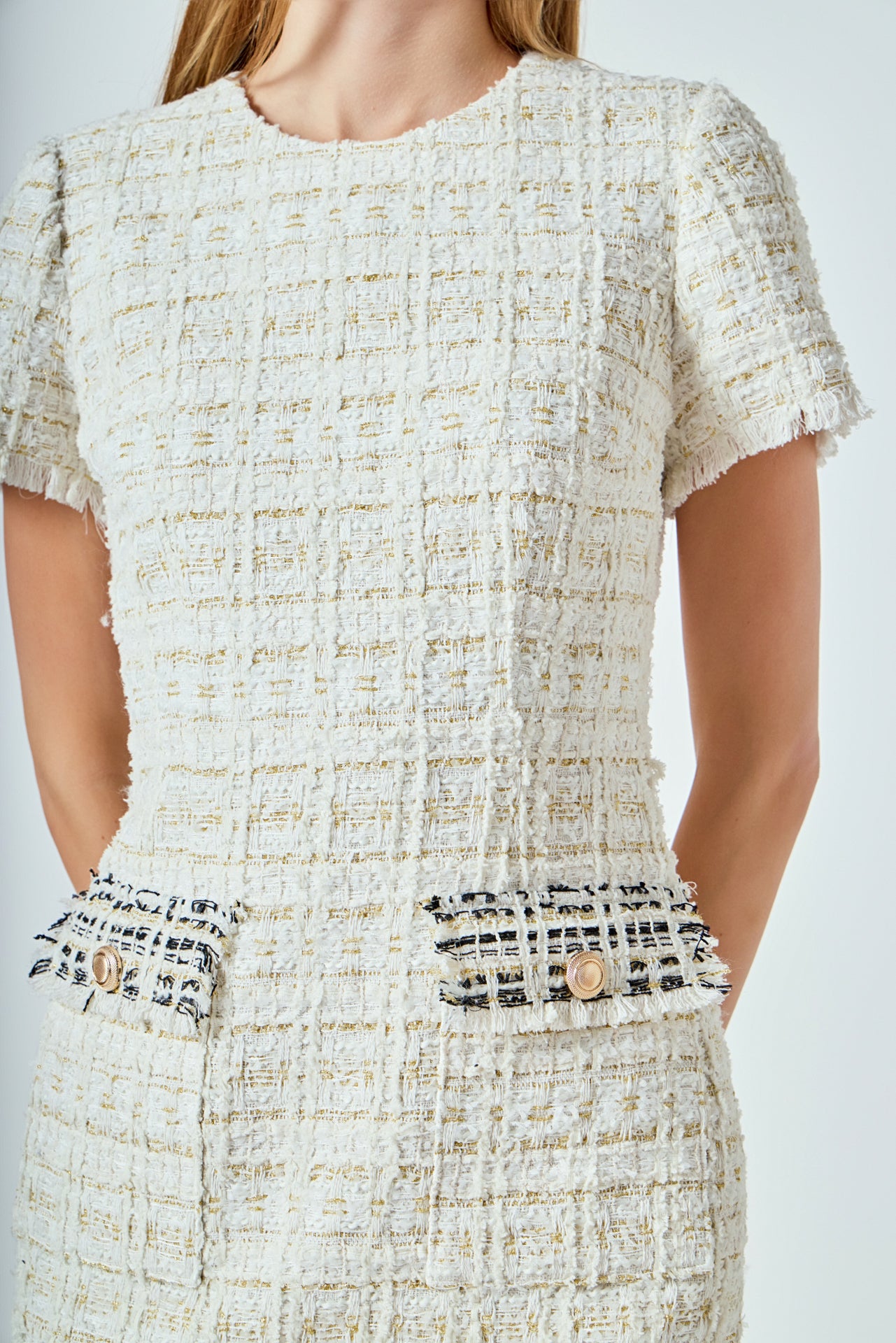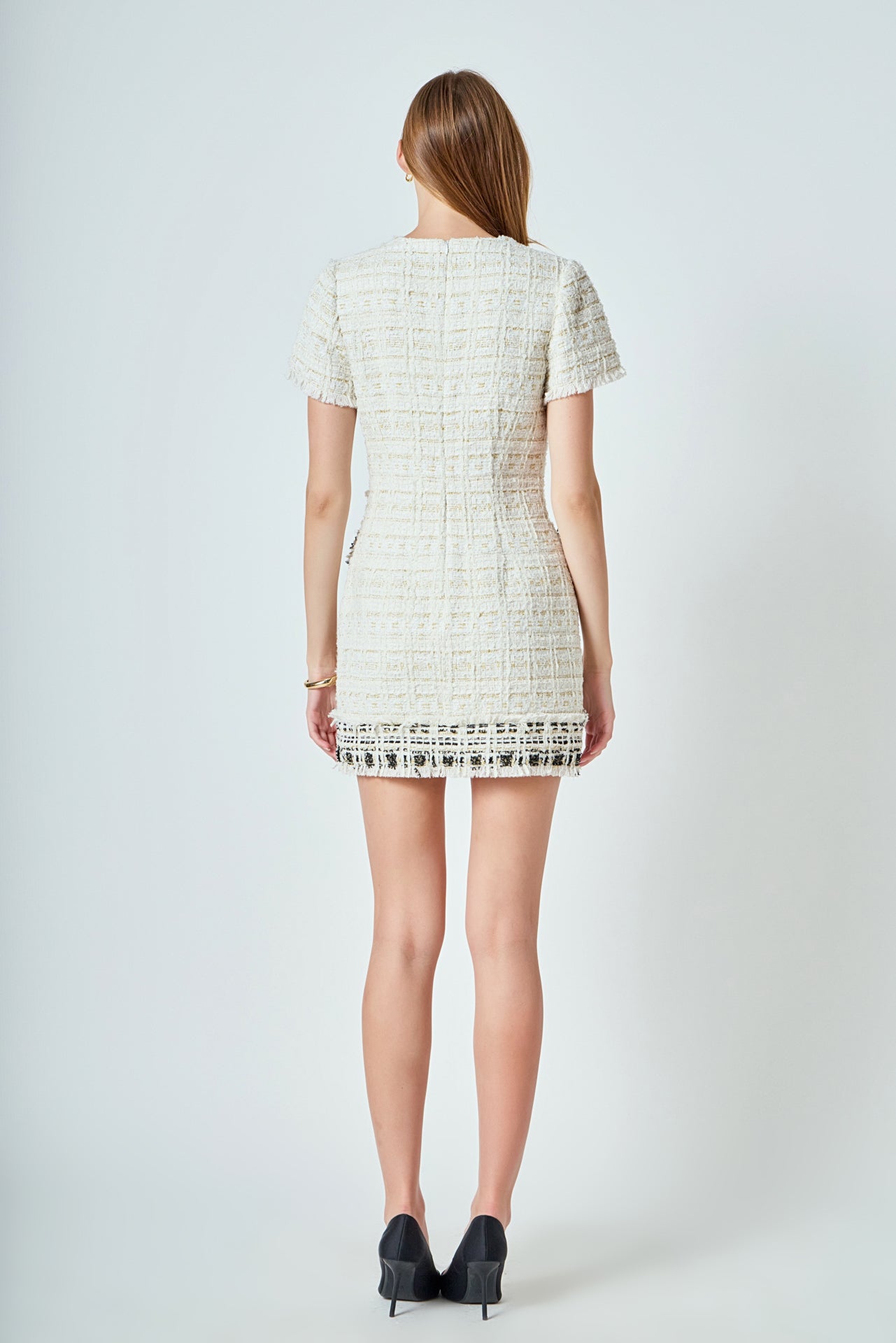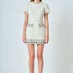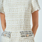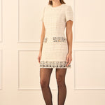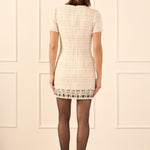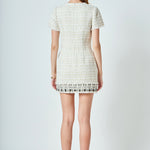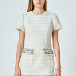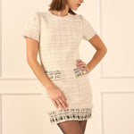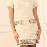 Introducing our must-have Tweed Fringed Mini Dress, the perfect addition to your dress collection! This chic mini length dress features eye-catching tweed fabric and playful fringed detailing for a trendy twist. Complete with front pockets for added convenience and function. Perfect for any occasion, this dress is the ultimate blend of style and practicality. It's the ideal choice for fashion-forward women who want to make a statement. Crafted with quality and designed for comfort, our Tweed Fringed Mini Dress is a wardrobe essential. Shop now and elevate your style game with this stunning dress!