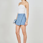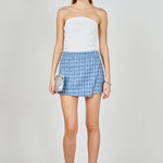 Wrap yourself in chic sophistication with our Tweed Front Flap Wrap Skirt. Crafted from high-quality tweed fabric, this skirt is guaranteed to elevate your look. The high waisted design flatters your figure while the front flap adds a touch of flair. Its mini length is perfect for showing off your legs. Versatile and timeless, this skirt is perfect for any occasion. Don't compromise on style and quality, choose our Tweed Front Flap Wrap Skirt. Shop now and make a statement with your fashion choices.