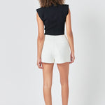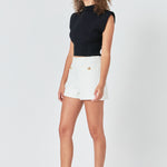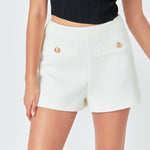 Elevate your shorts game with our Tweed High Waist Shorts. The flattering high-waisted design accentuates your curves while the side zipper ensures a sleek and secure fit. Complete with front nonfunctional buttons and convenient pockets these shorts combine fashion and functionality. Crafted from high-quality tweed fabric they are perfect for adding a touch of sophistication to your summer wardrobe. Pair them with a cropped top and wedges for a chic look or keep it casual with a basic tee and sneakers. These shorts are a must-have for any fashion-forward babe. Shop now and stand out in style!
