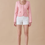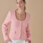 Made of medium-weight tweed this jacket has princess seams and shoulder pads which give an elevated structured fit. You can fasten the jacket with gold-rimmed tweed buttons and keep essentials in the flap pockets.