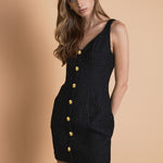 Elevate your style game with our Tweed Mini Dress. The soft and luxurious tweed fabric adds a touch of sophistication to this mini length dress. With a fitted silhouette and sleeveless design this dress is perfect for any occasion. The timeless tweed pattern makes it a versatile piece that can be dressed up or down. Pair it with heels for a chic evening look or with sneakers for a casual daytime outfit. Add this must-have piece to your wardrobe for a fashionable and elegant look. Get yours now!