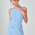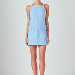 Look chic and stylish in our Tweed Mini Dress! This must-have dress features a flattering mini length that shows off your legs and a comfortable sleeveless design perfect for warmer days. Made with durable tweed fabric, this dress is both elegant and versatile, making it a staple in any wardrobe. The front pocket and flap add a touch of functionality and edginess to the dress, making it perfect for any occasion. Shop now and elevate your wardrobe with this must-have piece. Perfect for work or play, our Tweed Mini Dress is a top pick for fashion-forward women.