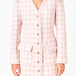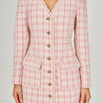 Welcome to luxury. Our one-of-a-kind tweed mini dress features gorgeous gold buttons and a beautiful rope-like trim crafted with various high-quality fabrics. You'll fall in love with the beautifully tailored long sleeves and the high-quality lining to keep you comfortable. The shoulder pads of this mini dress give it the perfect amount of structure, and you'll love the flattering fitted silhouette. Perfect for the office or brunch, pair with sheer tights and your favorite pumps for a jaw-dropping look.