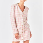Premium Long Sleeve Tweed Mini Dress