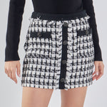 Hey ladies, it's time to show off your style. Revamp your wardrobe with this mini skirt from endless rose - designed with a flattering high waist and fitted silhouette, plus accent jewel buttons for an extra touch of glamor. Whether dressed up or down, this tweed skirt with fringe detail will make any outfit stand out. Elevate your look with this statement piece.
