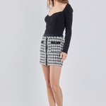 BLACK/WHITE: Height 5'9" / Bust 30.5" / Waist 24" / Hips 34.5"