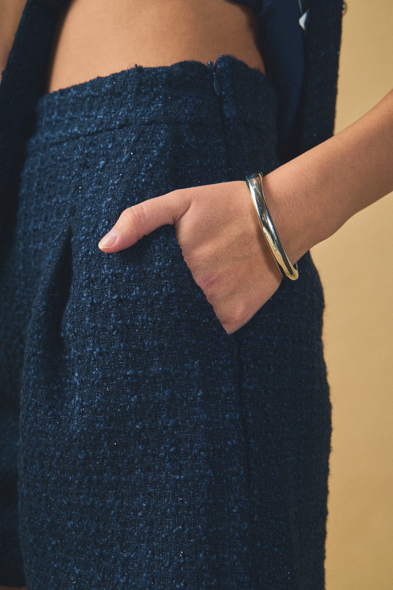 Elevate your wardrobe with our Tweed Relaxed Long Shorts, where classic texture meets modern ease. Crafted from rich tweed fabric, these shorts offer a relaxed fit and a flattering mid-rise waist that balances comfort with style. Their longer length adds versatility, making them equally suited for polished day looks or laid-back weekend wear. A chic staple for the fashion-conscious, these shorts bring timeless appeal and effortless sophistication to any outfit.