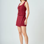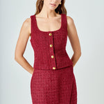 Tweed Scoop Neck Buttoned Top