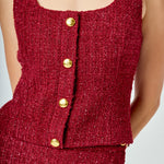 Indulge in vintage flair with our Tweed Scoop Neck Buttoned Top. Made from high-quality tweed fabric, this top exudes timeless elegance. The scoop neckline adds a touch of femininity, while the center front buttons offer a classic touch. The sleeveless design makes it perfect for layering or wearing on its own. Pair it with high-waisted trousers for a chic office look or wear it with jeans for a more casual feel. Upgrade your wardrobe with this versatile and sophisticated top that is perfect for any occasion. Shop now and embrace the charm of tweed.