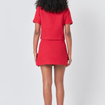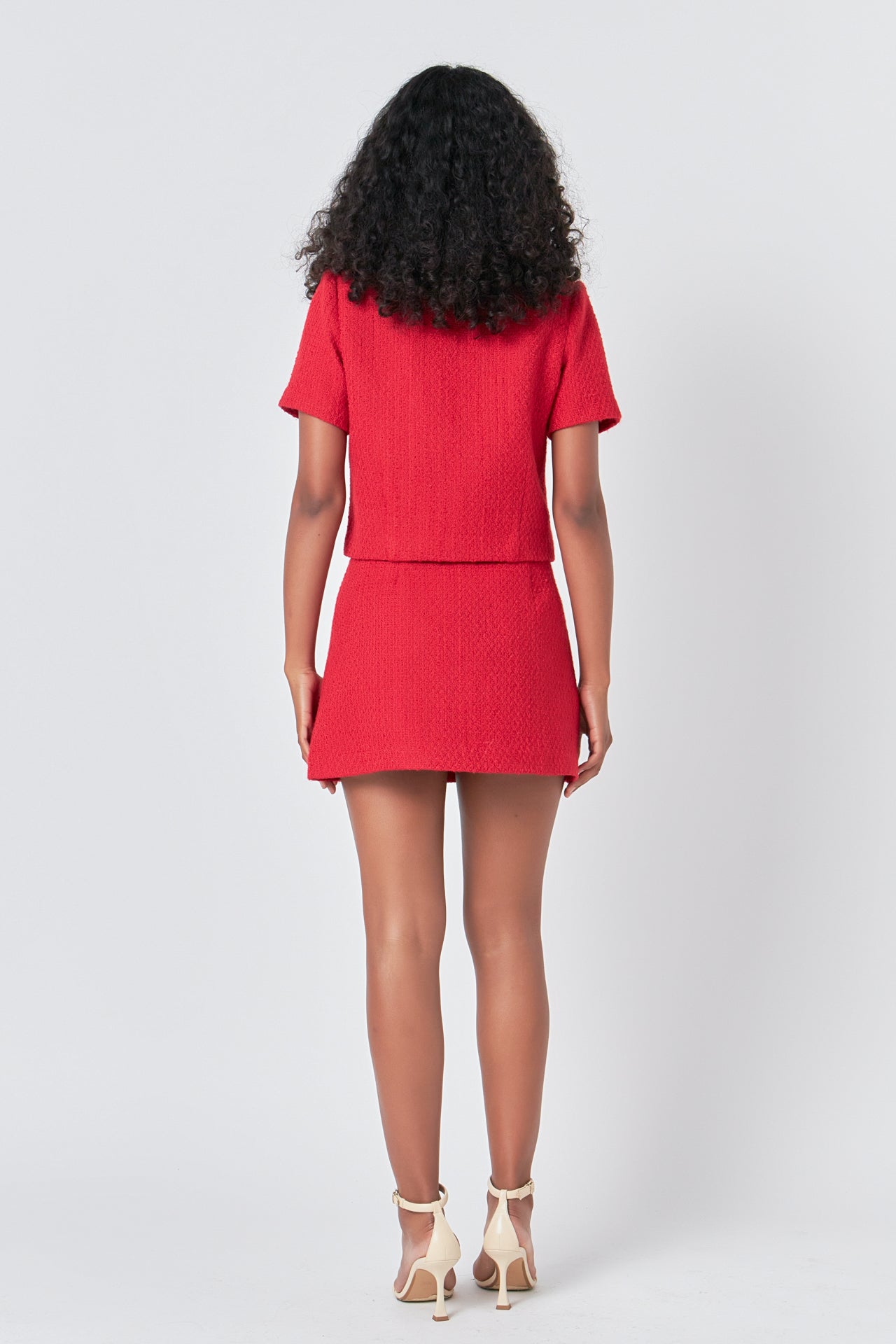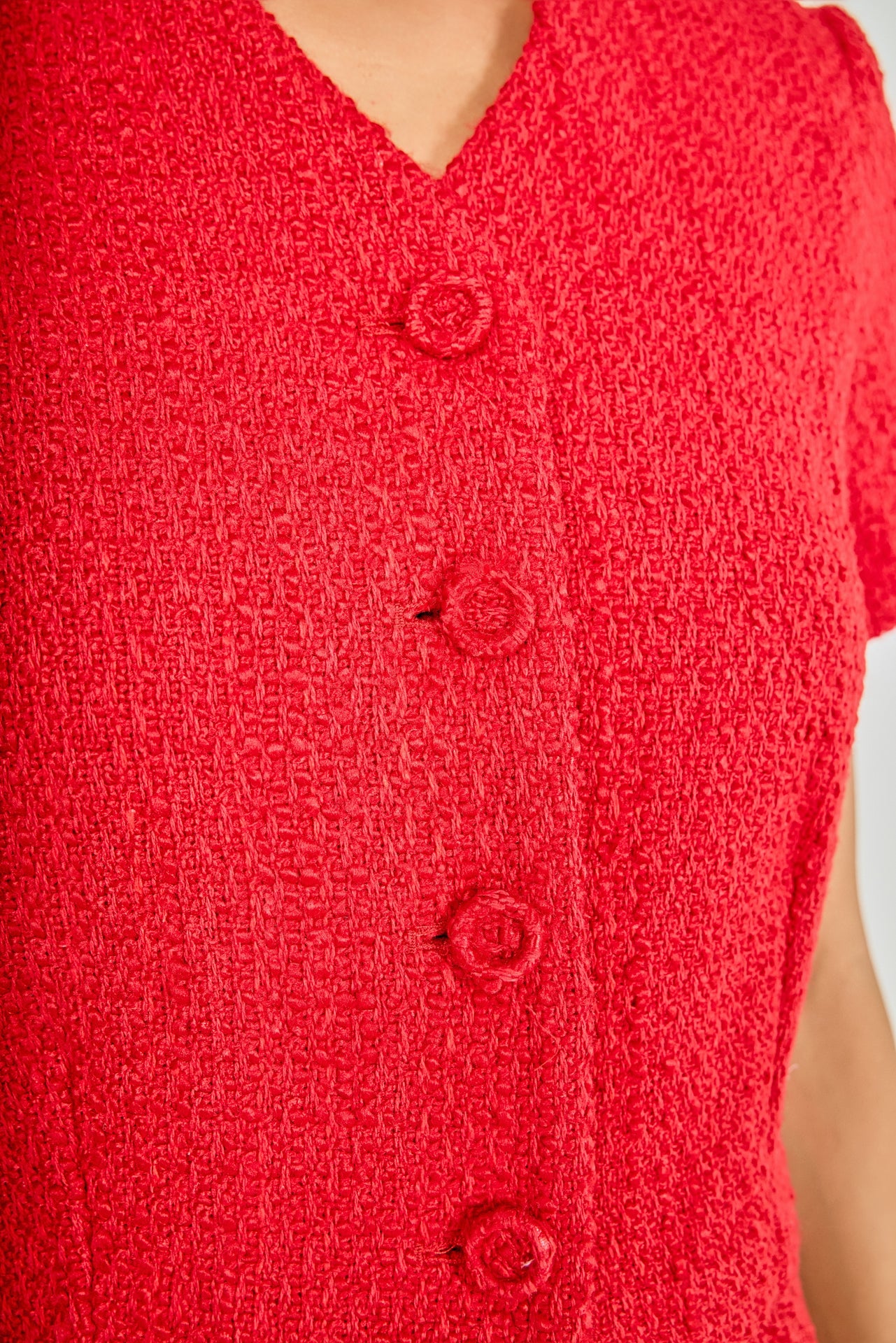 Elevate your style with our Tweed Short Sleeve Top. A classic V-neckline and front button up closure make this top a versatile piece for any occasion. The lightweight tweed fabric adds texture and dimension while the short sleeves offer a comfortable fit. Perfect for transitioning from day to night this top is a must-have for any fashion-forward wardrobe. Upgrade your wardrobe with our Tweed Short Sleeve Top and make a statement wherever you go. Shop now and stand out in this trendy and chic top.