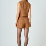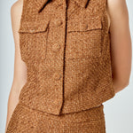 Step up your style game with our must-have Tweed Short Sleeveless Jacket! Made with high-quality tweed fabric, this jacket offers a trendy cropped length and sleek collar for an effortless polished look. Perfect for layering or dressing up any outfit, this jacket also includes front pockets for added functionality. Elevate your wardrobe with this versatile and on-trend piece that will keep you looking chic and cozy all day long. Shop now and add this stunning Tweed Short Sleeveless Jacket to your collection. Perfect for any fashion-forward individual!