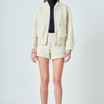 Introducing our stunning Tweed Shorts, perfect for a chic and sophisticated look. These high-waisted shorts are crafted from top-quality tweed fabric, giving them a luxurious and timeless appeal. The band detail adds a touch of elegance, while the side zipper ensures a flattering fit. These shorts are versatile and can be worn casually or dressed up for a special occasion. Elevate any outfit with these must-have tweed shorts, available in a range of sizes. Shop now and add a classic piece to your wardrobe. Don't miss out on this stylish and comfortable essential.