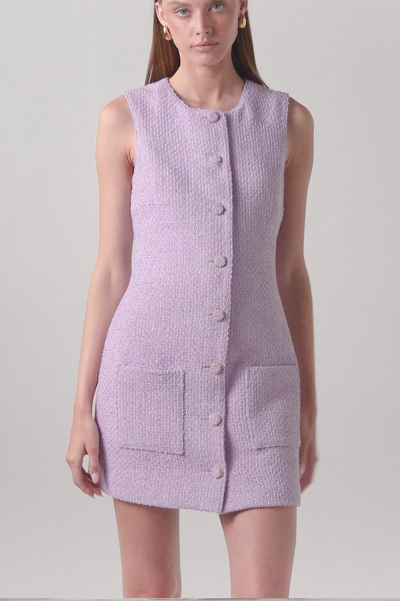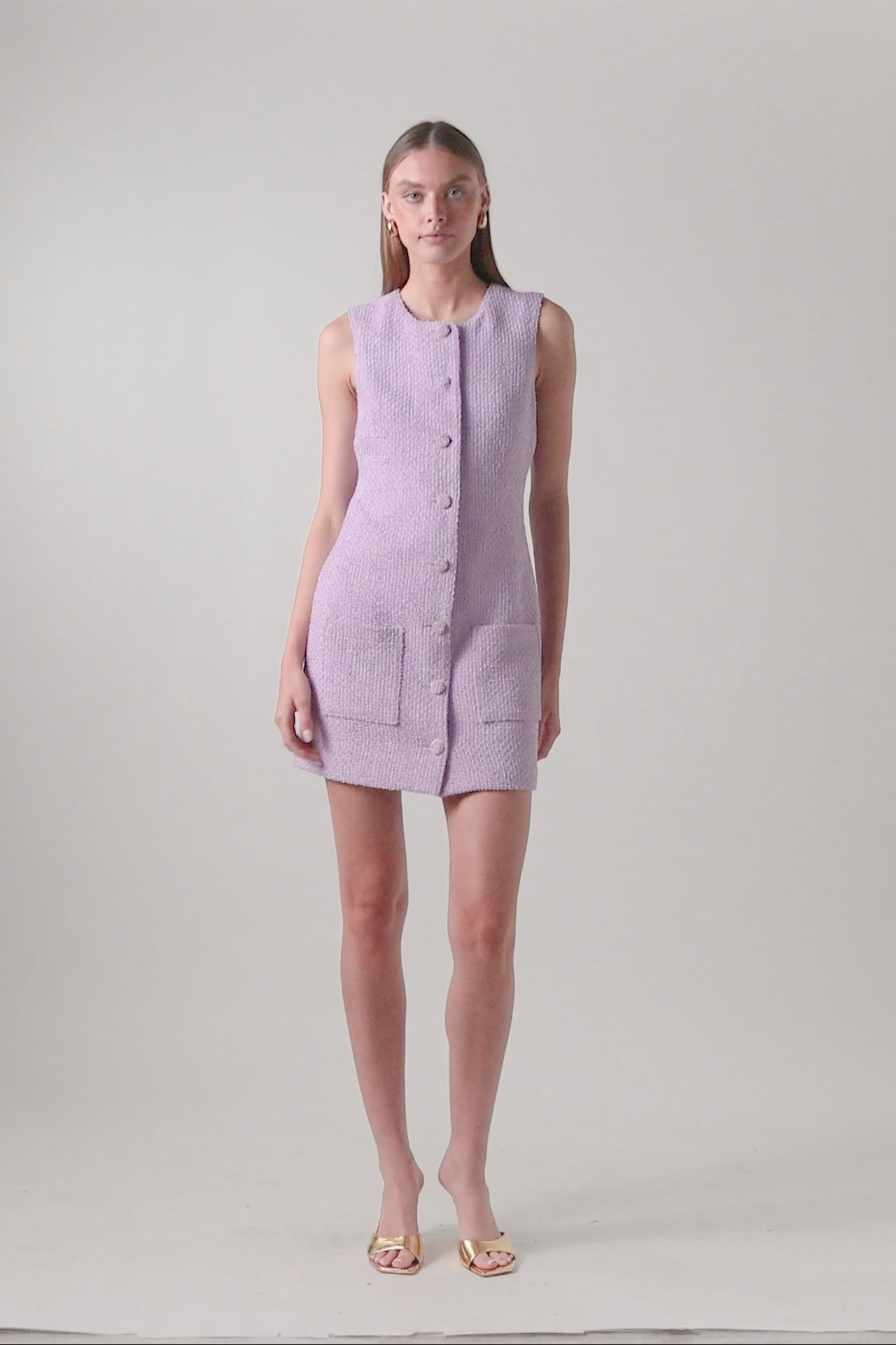 - Gold-trimmed tweed buttons