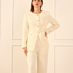 Upgrade your pants game with our Tweed Wide Pants. Crafted with the finest tweed fabric, these mid-rise pants feature a side zipper for a sleek, flattering fit. The waist band adds an extra touch of sophistication while the back welts provide a structured look. The wide leg cut adds a touch of elegance and pairs perfectly with heels or boots. Ideal for work, an evening out, or any occasion where you want to make a statement. These versatile pants are a must-have in your wardrobe. Shop now and elevate your style with our Tweed Wide Pants.