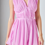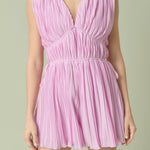 Experience effortless style and comfort with our V-Neck Pleated Romper. Perfect for any occasion, this mini romper will have you looking chic and feeling confident. The sleeveless design and V-neckline add a touch of glam, while the all-over pleats give a feminine flair. Made with high-quality materials, this romper is both lightweight and breathable. Whether you're dressing up or down, this romper is versatile and easy to wear. Upgrade your wardrobe with our V-Neck Pleated Romper that combines fashion and function. Shop now and stand out from the crowd!