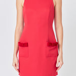 Introducing our stunning Velvet Bow Mini Dress, the perfect addition to your dress collection. This charming mini dress features a luxurious velvet bow detail, adding a touch of elegance to your look. The sleeveless design and round neckline make it a versatile piece that can be styled for any occasion. With its mini length, this dress is ideal for showcasing your gorgeous legs. Made with the highest quality materials, it ensures you'll feel comfortable and stylish all day long. Elevate your wardrobe with our Velvet Bow Mini Dress and make heads turn.