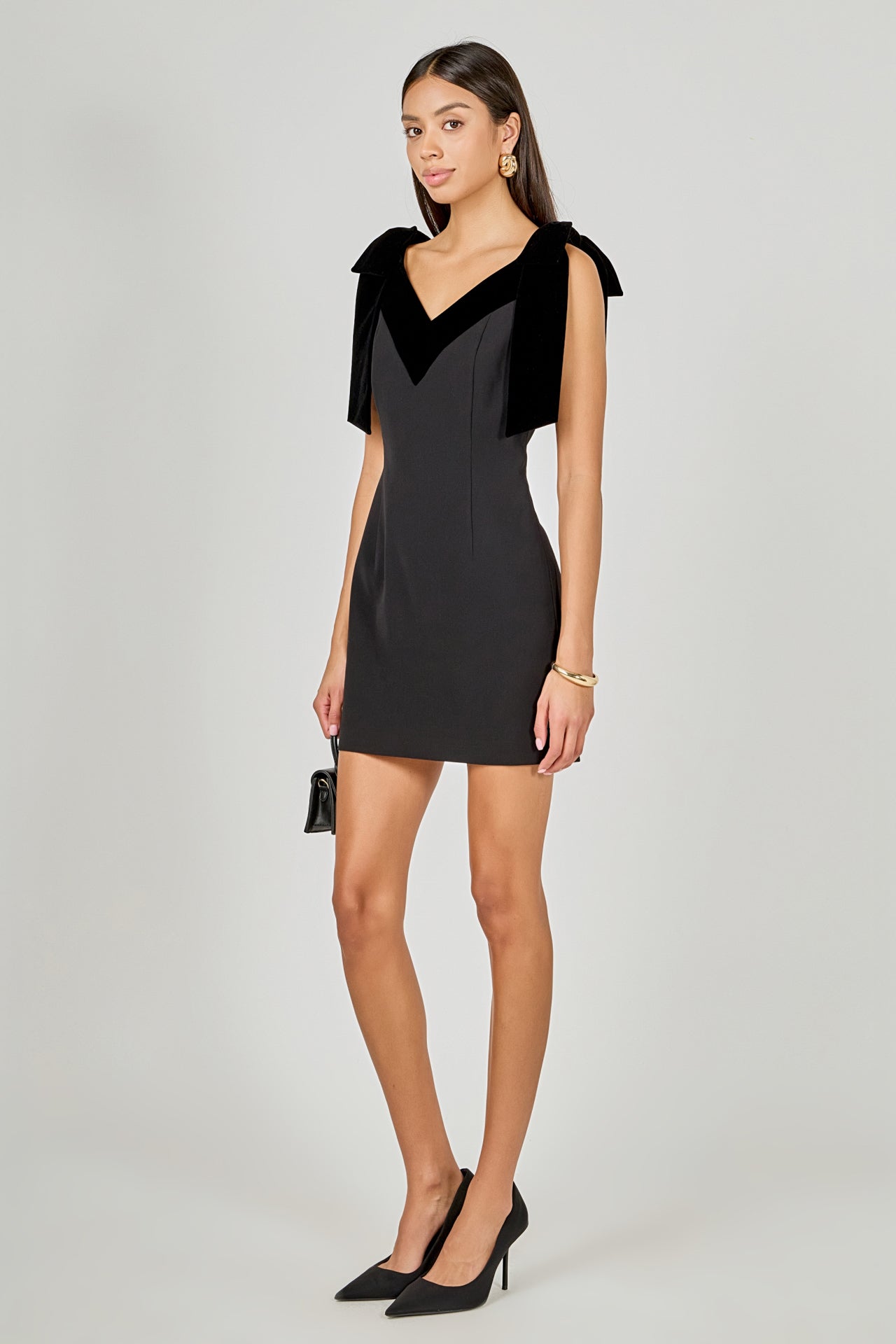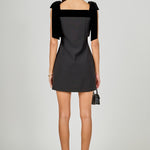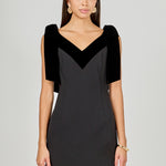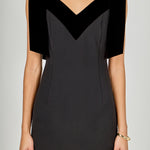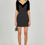 Make a statement in our Velvet Detail Mini Dress. The bold color block and plunging V-neck add allure, while the sleeveless design keeps it chic and comfortable. Bow straps complete the look with a playful touch. Crafted from soft, luxurious velvet, this mini offers a flattering fit that’s perfect for any occasion.