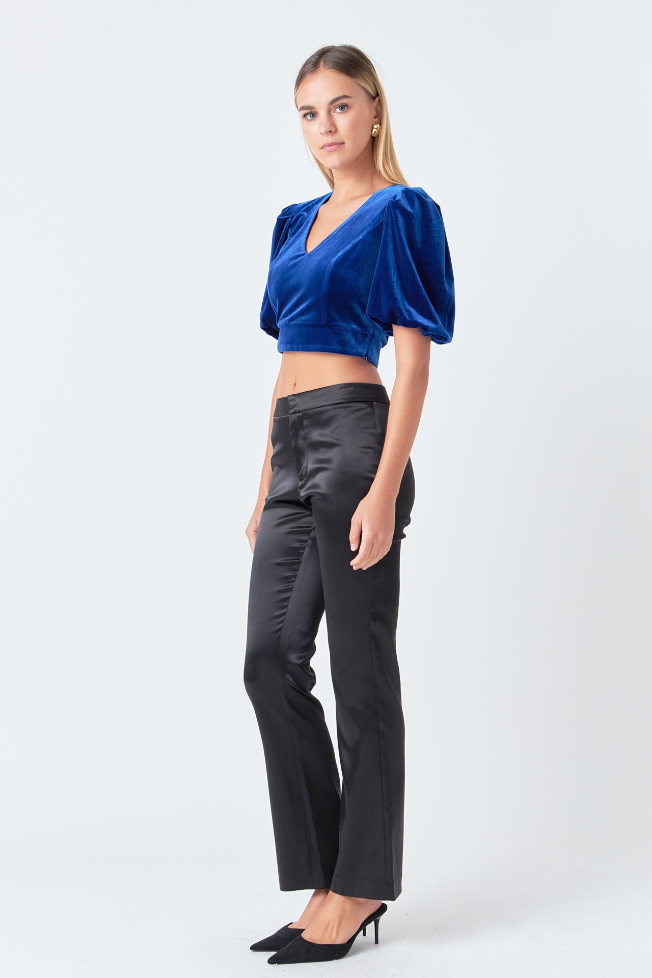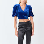 Add some luxury to your wardrobe with this endless rose top. Crafted with soft velvet, this top features puffy short sleeves and a cropped silhouette. It has a concealed side zipper to make getting it on and off a breeze. Pair this velvet top with for an effortless look, or dress it up with a skirt for special occasions.
