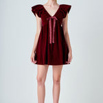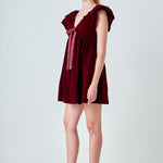 Velvet Satin Bow Mini Dress