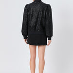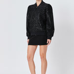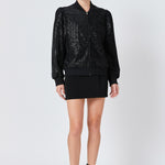 Cozy up in our stunning Velvet Sequin Bomber Jacket! Featuring a dazzling sequin design on a soft velvet exterior this oversized jacket is guaranteed to make a statement. It also features a front center zipper allowing for a customizable fit. With its unique combination of fabrics and details this jacket is sure to turn heads! Find your perfect fit today and stand out from the crowd.