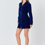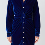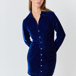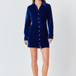 You'll be feeling pretty with this velvet shirt style mini dress. With a flattering ruched waist detail, collared neck and back pleats, this dress is perfect for special occasions. Style yours with high heels and a clutch bag for an elegant look. Button up the placket for a more formal feel, or keep it open for an relaxed vibe.