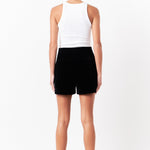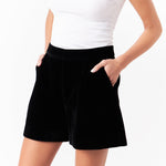 Achieve a timeless yet sophisticated look with these Velvet Shorts. They feature a waistband, a front hook-and-bar closure, and tuck details that give a neat and tailored finish. These soft velvet shorts are the perfect addition to your wardrobe, providing luxury and comfort. Not only comfortable, they are designed to flatter your figure too. Opt for our Velvet Shorts for an everlasting style.