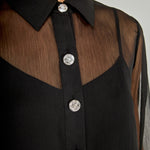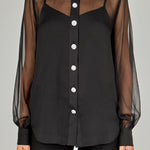 Featuring a crisp collar and long puff sleeves with cuffed details, our Volume Sleeve Shirt Blouse balances sophistication with trend-forward style. The front button closure is accented with sparkling rhinestone buttons for a subtle touch of glamour. Crafted from high-quality, comfortable fabric, this blouse works effortlessly for both casual and dressed-up looks.