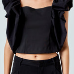 Step into the summer sunshine with this airy voluminous tube top. The square neckline offers a feminine shape while the bubbled short sleeves and back string ties detail give it its playful look. Perfect for any beach-side vacation or a garden party in the sun. Get ready to soak up the warmth and light of summer while looking your best!