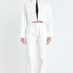 Our wide leg high waisted pants are designed to elevate your wardrobe with effortless style. The high waisted fit creates a flattering silhouette and elongates your legs while the wide legs add a touch of sophistication. The hook and bar closure ensures a secure fit while the functional pockets add both convenience and flair. These pants are made with high-quality materials for a comfortable and durable wear. Perfect for any occasion dress them up or down for a trendy and comfortable look. Upgrade your pant game with our must-have wide leg high waisted pants. Shop now and slay the fashion game!