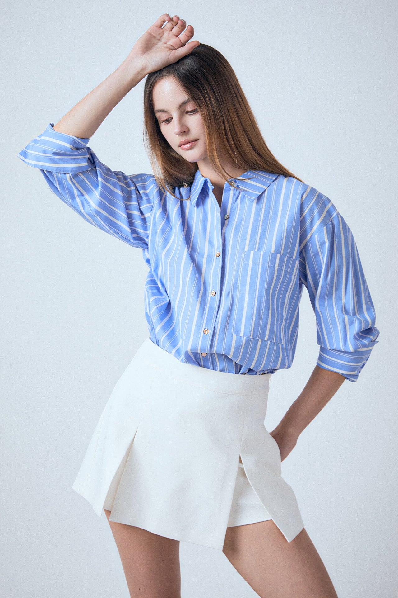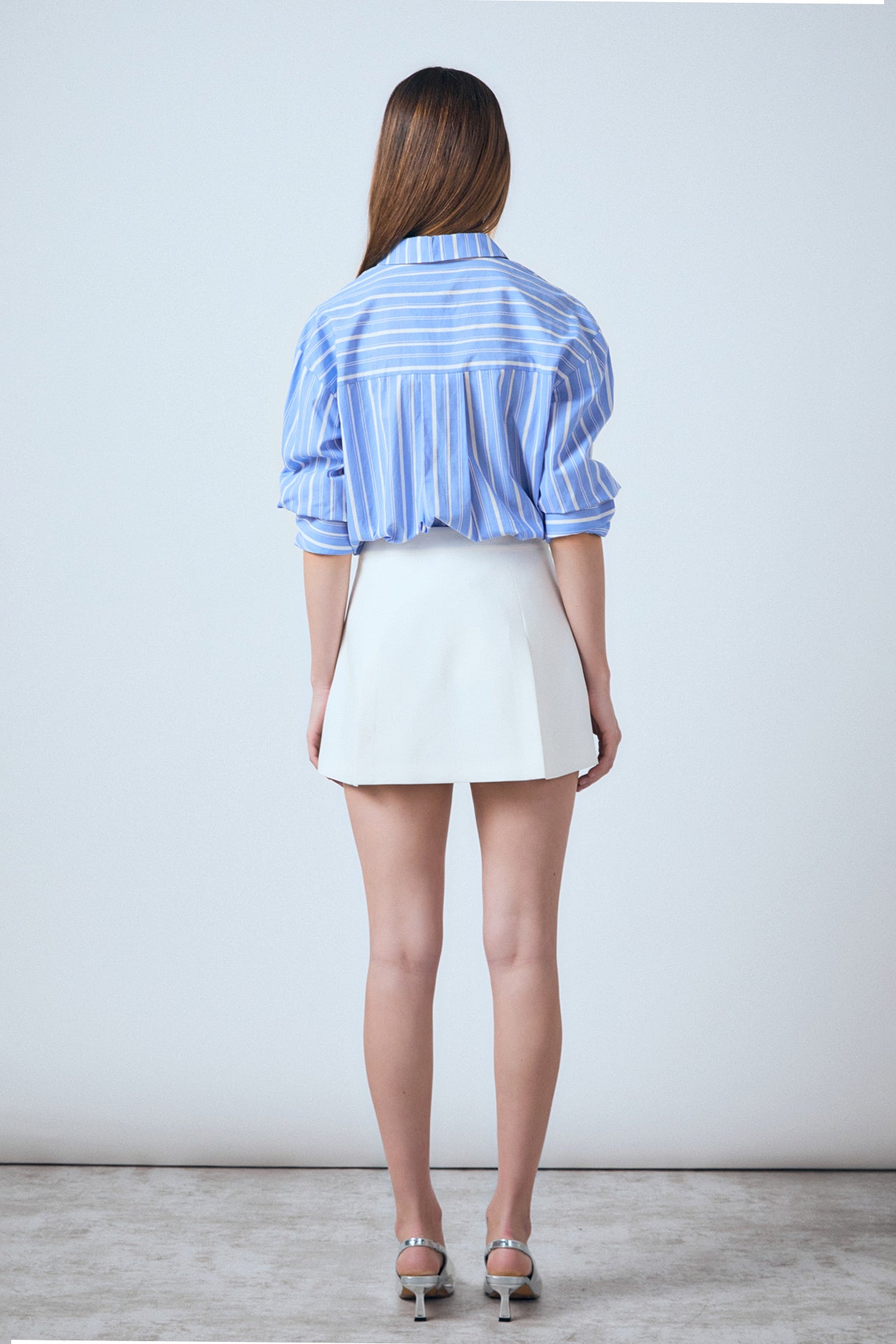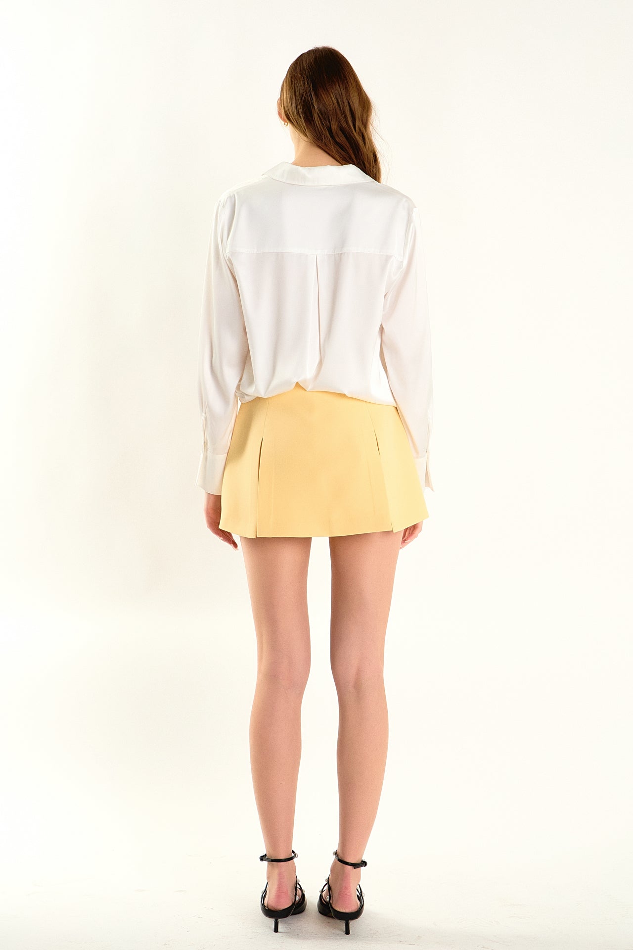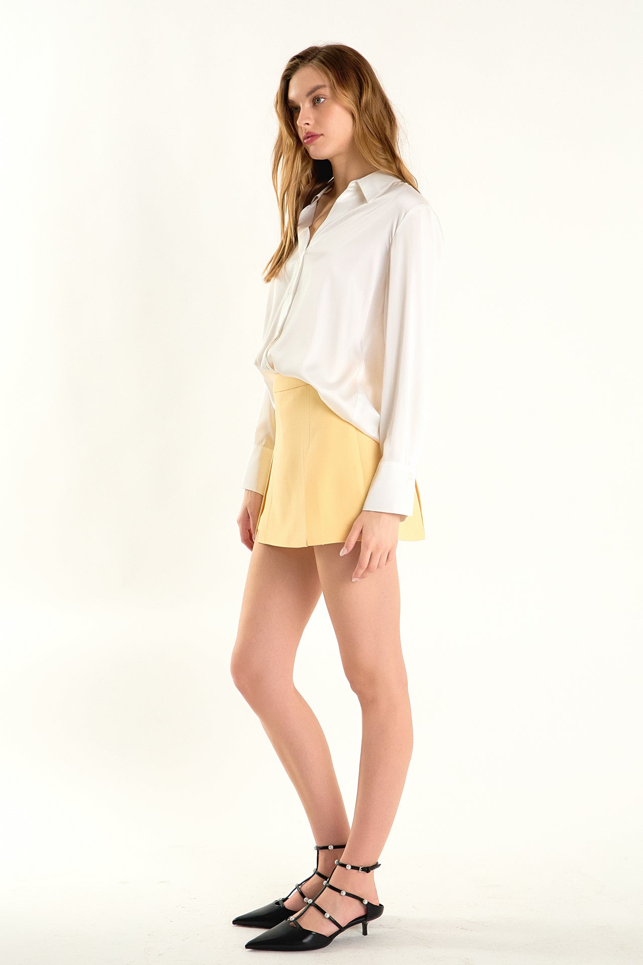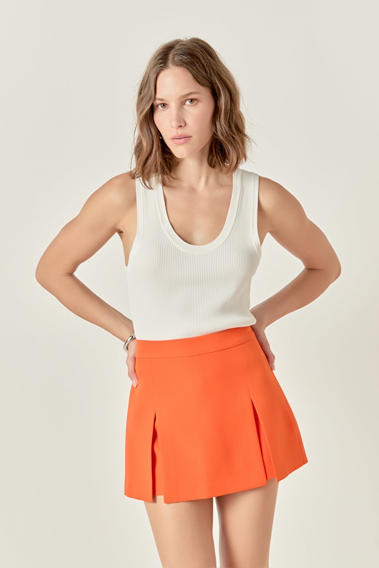 Step into standout style with our Wide Single Pleat Skort. A daring fusion of modern design and everyday ease. The high waist sculpts your silhouette, while unexpected front and back cutouts bring an edgy flair. Crafted from airy, breathable fabric, this skort keeps you cool and confident from day to night. For those who crave standing out without sacrificing comfort, this piece is an essential game-changer.