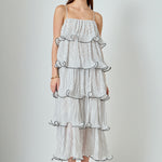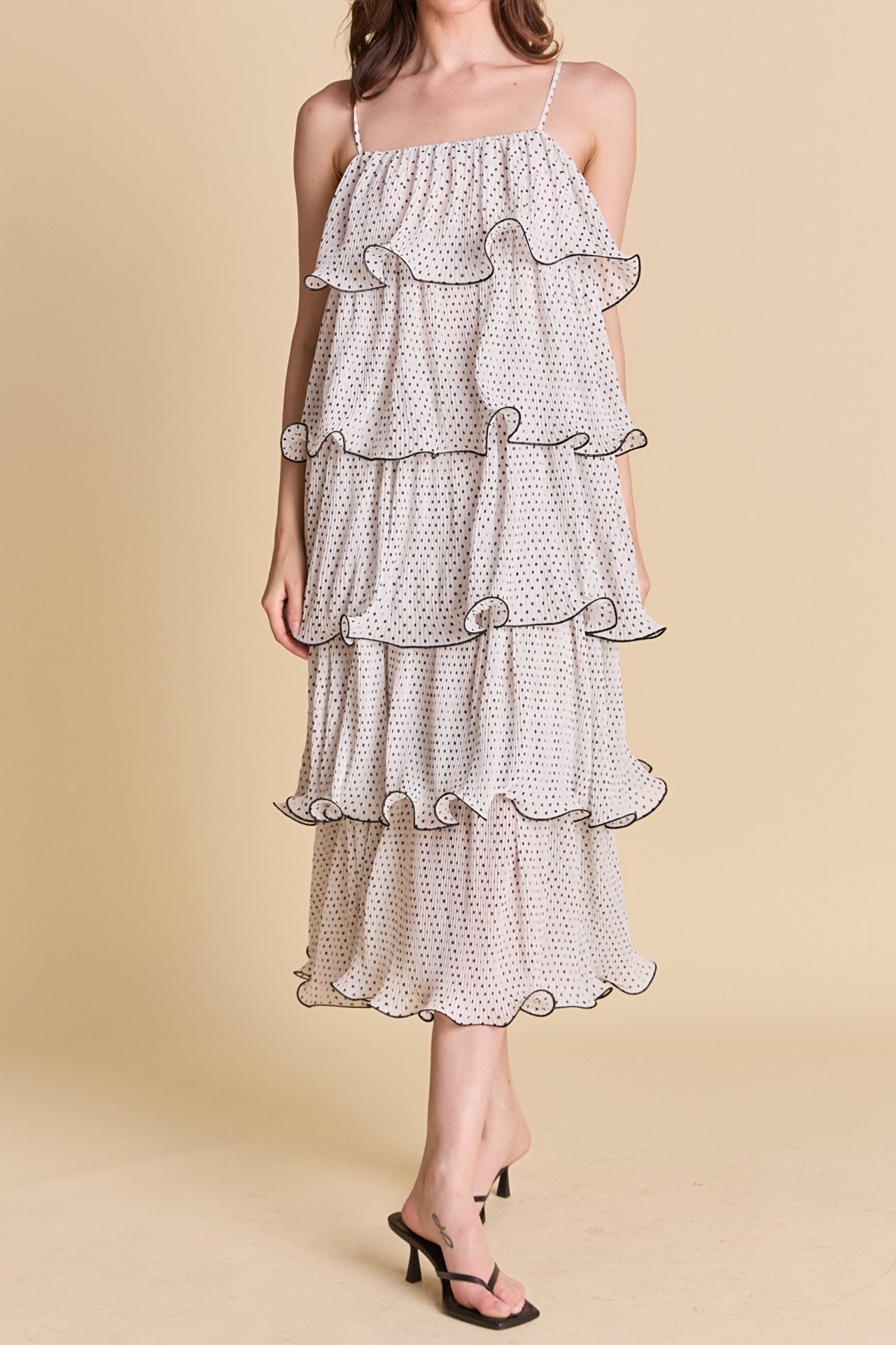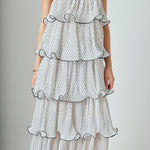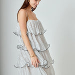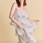 Add a touch of whimsy to your wardrobe with our Wired Polka Dot Tiered Maxi Dress! The playful polka dot print is a timeless classic, while the wiring detail adds a modern twist to this must-have dress. The tiered design creates a flowy, feminine silhouette that's perfect for any occasion. You'll love how the adjustable straps ensure a perfect fit. Stand out from the crowd and turn heads wherever you go in this stunning dress. Perfect for a day at the beach or a night out with friends. Shop now and unleash your inner fashionista!