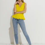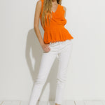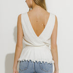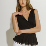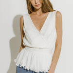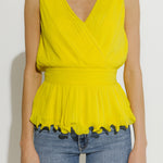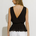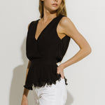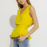 This Pleated Peplum Top is the perfect addition to your closet! With a beautiful V-neckline at the front and back, it's sure to turn heads. Our sleeveless chiffon top is crafted from pleated fabric for extra style. It is finished off with a zipper closure at the side and will look great dressed up or down. Get your Pleated Peplum Top now to make a fashion statement!