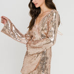 This Women Woven Dress is perfect for any special occasion. Featuring a sparkly sequin dress, long bell sleeve, and tie detail at the back, this dress is sure to draw attention. The hidden zipper at the back adds convenience and ensures a perfect fit. Change up your wardrobe with this timeless yet trendy piece and show off your unique style.