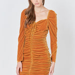 Our Women Woven Dress is an elegant and timeless piece for all your needs. This stunning dress features a sweetheart neckline, mini length, ruched body, and long sleeves for a sophisticated look. Crafted from the finest quality material, it is sure to bring out the best in your style. Its unique design and stunning colour is sure to turn heads. Make a statement with this must-have fashion piece. Experience an effortless elegance with this classic dress.