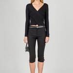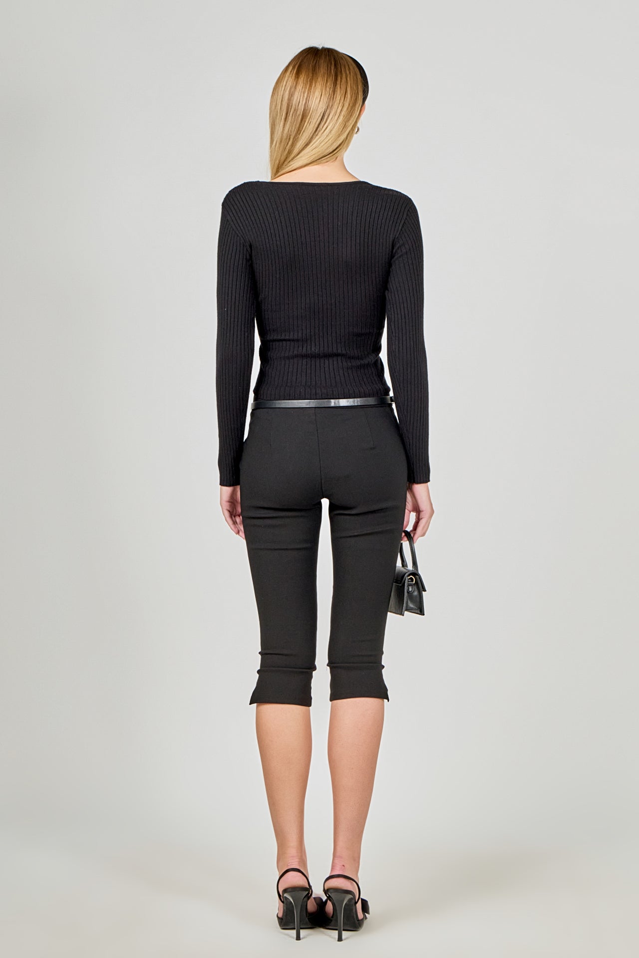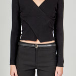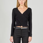 The perfect top to throw on without a second thought. The neckline is detailed with a double row of wrapped knit. This sweater is so easy to style and the fitted look will make you look amazing.