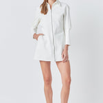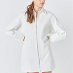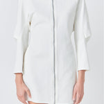 Elevate your style game with our Zip Up Mini Dress. This dress exudes both glamour and comfort with its unique features. The mini length makes it perfect for those who love to show off their legs while the two-way opening zipper adds versatility and a touch of boldness to the look. The collared neckline gives a classic touch while the front bottom slit adds a dash of playfulness. Its effortless elegance will surely make heads turn. Shop now and make a statement in our Zip Up Mini Dress. Perfect for any occasion.